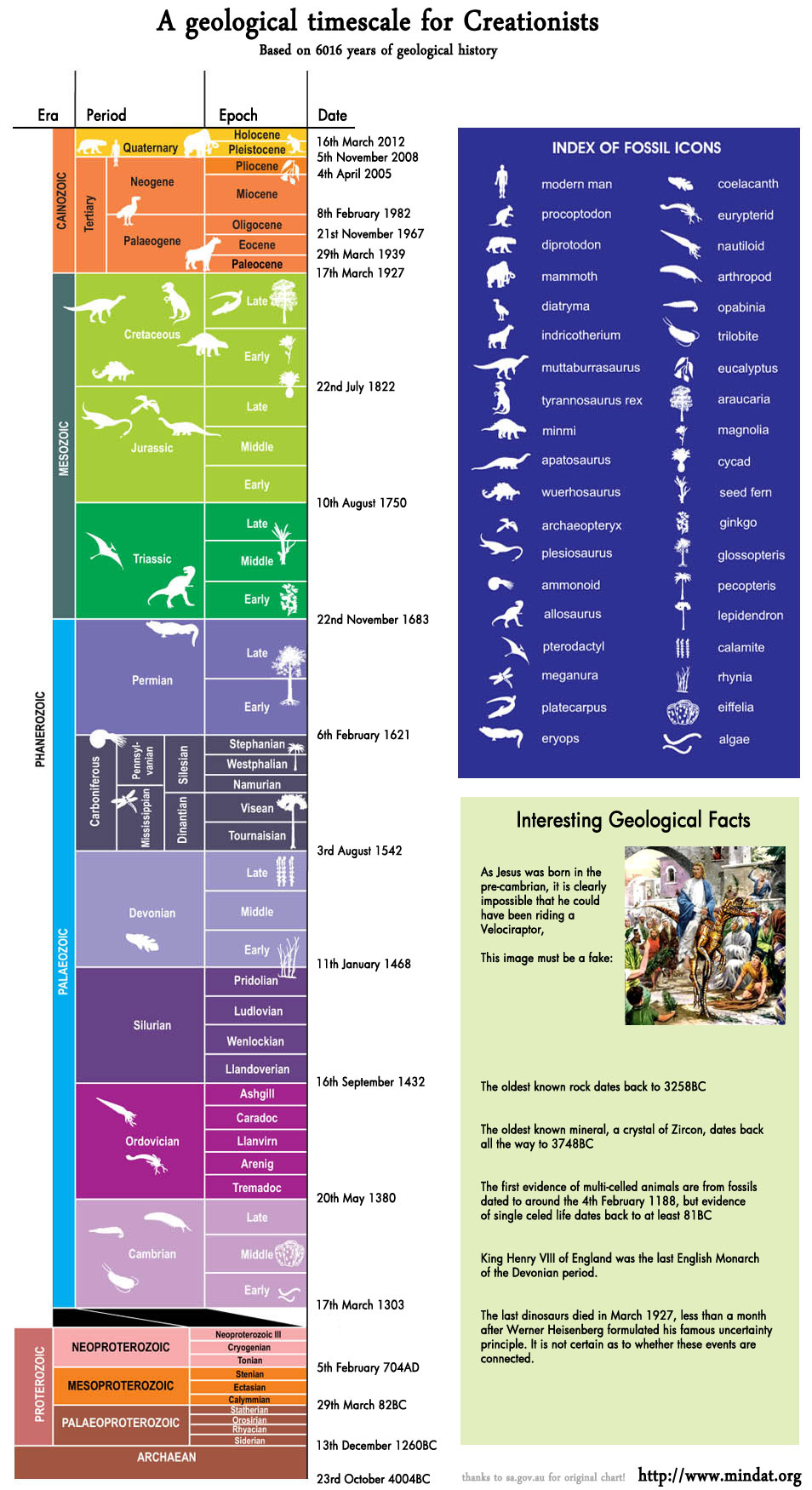Desde o século XIX, com as descobertas da geologia e da biologia, o relato da Criação presente no Gênesis tem sido posto em cheque, virando, para uns, uma fábula, e, para outros, um critério indicador da fé verdadeira. Toda essa celeuma, para mim, é completamente sem sentido, já que a mera leitura do Livro Sagrado indica de maneira clara que ali não se pretende relatar uma história com rigor cronológico. De qualquer forma, a Igreja permite a adesão a uma exegese literalista, mas essa, sem dúvida, tem de enfrentar problemas como o exposto nesta ilustração: