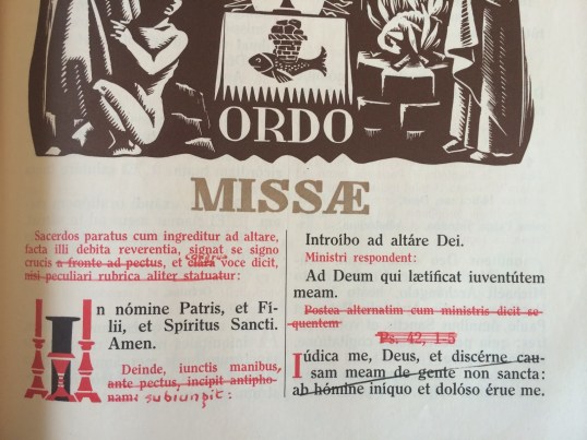 Citações como essas podem ser multiplicadas indefinidamente. Se um rito litúrgico é perfeito na construção, perfeito no sentido e perfeito na expressão, é difícil entender como ele pode conter partes que foram adicionadas com pouca vantaggem. Que partes eram exatamente essas de acordo com os elaboradores do Missal de 1965? Eles decidiram não demorar, e começaram com o começo suprimindo o Salmo 42, o Judica me. Assim, do ponto em que a Missa começa, um diálogo familiar e amável foi removido e dentro de poucos segundos o celebrante já rezava seu Confiteor, deixando claro para os fiéis que rito tradicional da Missa, descrito pelo Frei Faber como “a mais bela coisa deste lado do céu”, não era mais considerado sacrossanto. O bem da Igreja realmente requeria que o Judica me fosse abolido? As palavras inspiradas desse Salmo inspirador prejudicavam nossa Fé? Os católicos que não estavam praticando sua fé retornaram por causa da supressão das palavras: “Envia a Tua luz e a Tua verdade; estas me conduzirão e me levarão ao Teu santo monte e aos Teus tabernáculos. E aproximar-me-ei do altar de Deus, do Deus que alegra a minha mocidade”? Ao menos que o bem da Igreja requeresse a supressão do Salmo, os que o removeram certamente desobedeceram ao Concílio.