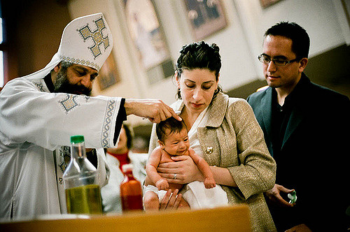 b) Liturgia: Nos rituais mais antigos dos sacramentos vemos um conjunto de cerimônias para que as pessoas sejam seladas, confirmadas, pelo Espírito Santo. Tanto é assim, que os grupos cismáticos mais antigos, como os coptas ou os ortodoxos-bizantinos, conhecidos por serem conservadores em matéria de liturgia, mantém e reconhecem a Crisma como um sacramento e um sacramento diferente do Batismo; nas fotos abaixo podemos ver uma criança recém batizada sendo crismada por um bispo copta: