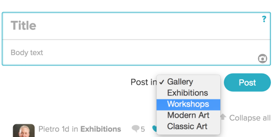 11) Selecionando um canal: você pode selecionar um dos canais para seu tópico na lista que surge na parte inferior da caixa de criação: