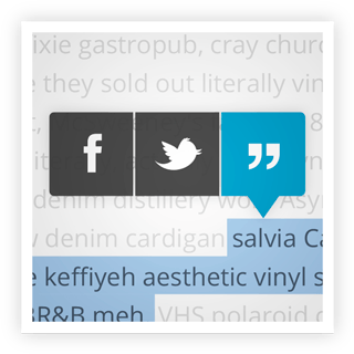 4) Citações: para fazer uma citação basta selecionar um texto qualquer que o símbolo da citação aparecerá juntamente com os botões de compartilhamento no Twitter e Facebook: